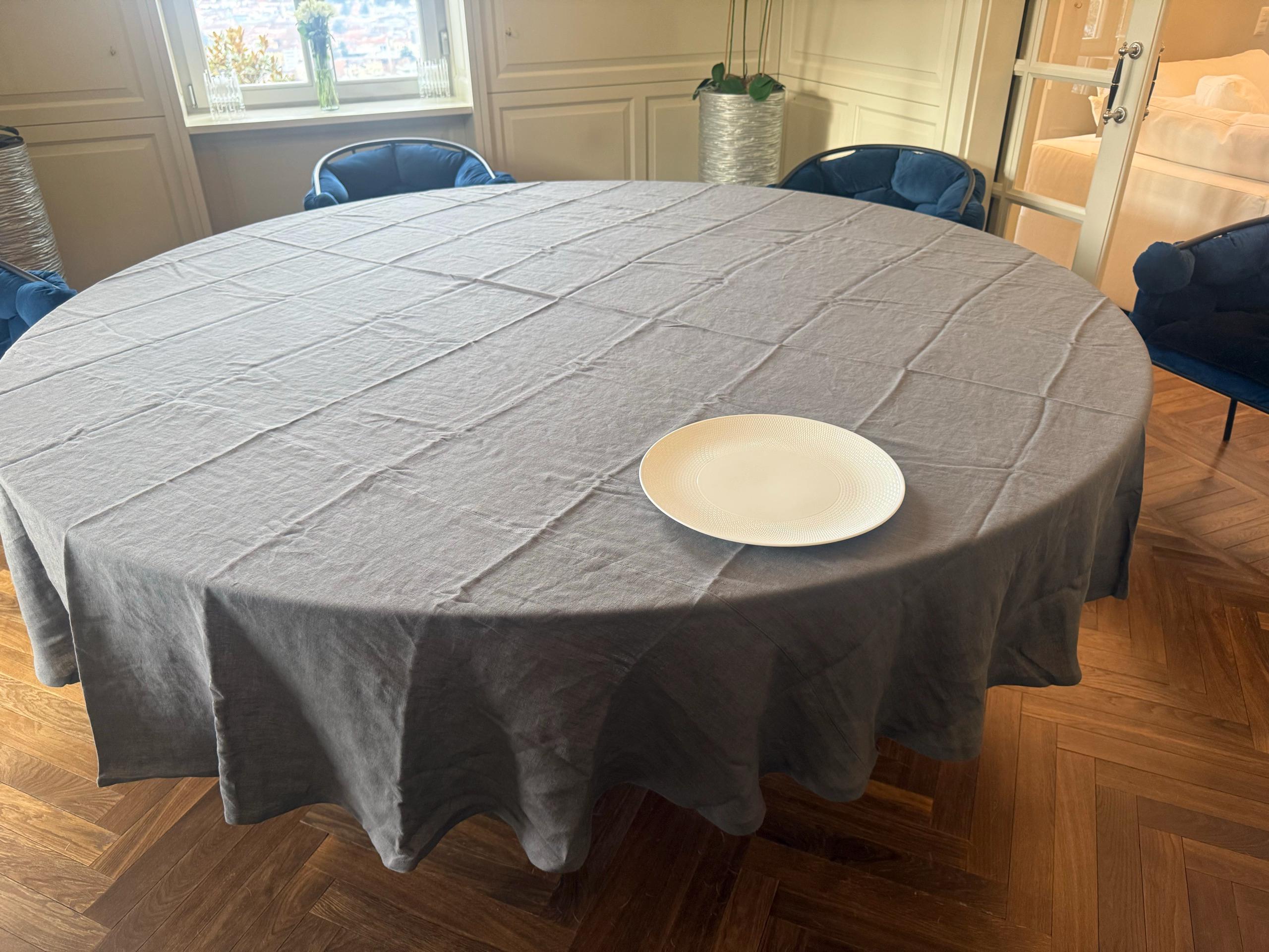 If your round table has a large size then in this listing you will find an extra large washed linen round tablecloth for it!