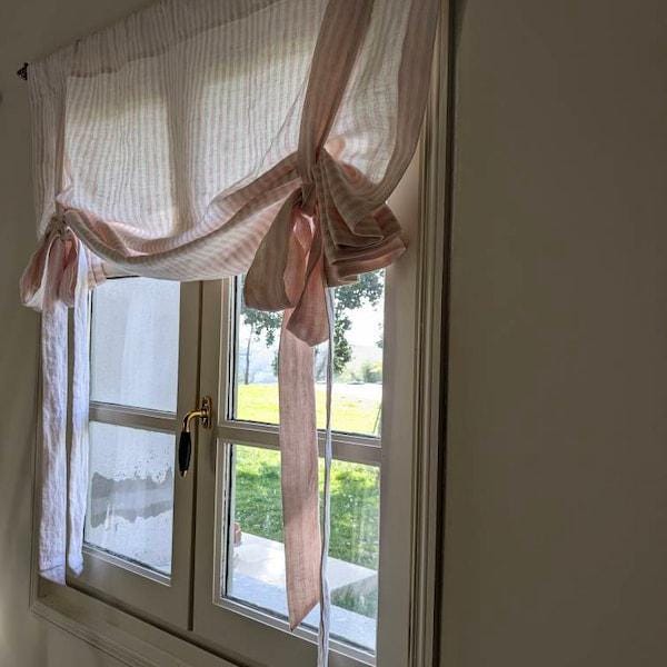 Canyon rose washed linen valance. An ideal choice for farmhouse decor.